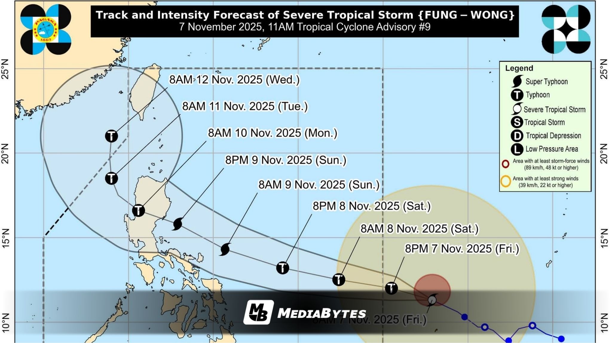 The storm is expected to enter PAR by late Friday or early Saturday, intensifying into a typhoon by Friday night and possibly a super typhoon by Saturday. PAGASA said landfall is projected over Northern or Central Luzon by Monday.